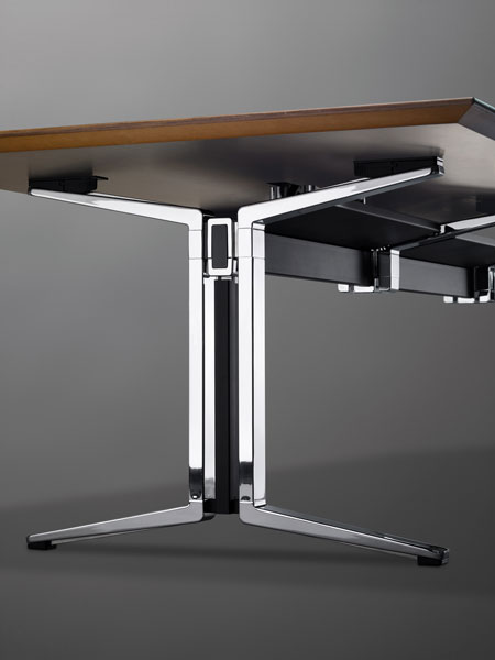 Das flexible medienorientierte Konferenzsystem PLENUM.K setzt neue Standards in Besprechungs- und Konferenzräumen. Die Konstruktion ist der modernen Brückenarchitektur entlehnt und beeindruckt mit einer überdurchschnittlichen Spannweite bis zu vier Meter. Die Anzahl der Tischbeine ist auf ein Minimum reduziert. Dadurch entsteht mehr Beinfreiheit für die Konferenzteilnehmer. Dank des Verbindungsknotens schafft PLENUM.K vielfältige Konfigurationsmöglichkeiten und bietet eine hohe Planungsflexibilität für Meetings oder konzentriertes Arbeiten in Gruppen. PLENUM.K verbindet technischer Funktionalität durch die Integration modernster Medientechnik, hochwertige Qualität und einen hohen Anspruch an Ästhetik für individuelle Ansprüche.